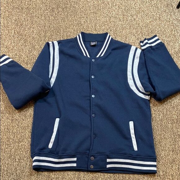 Stylish and comfortable navy blue varsity jacket for Men’s Perfect for casual outings and school events.