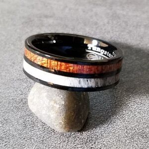Men's Real Tungsten Wedding Ring With Deer Bone and Whiskey Barrel Wood Inlays