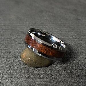 Men's Real Silver Tungsten Wedding Ring Whiskey Barrel Wood Inlay