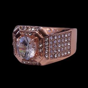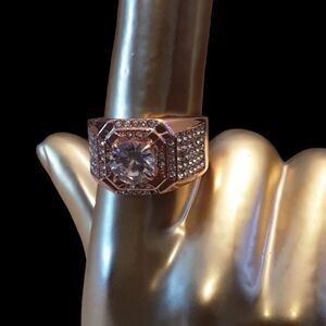 Beautiful rose Gold men's bling ring makes quite a statement with its sparkle and stones! NWOT -- in beautiful condition!