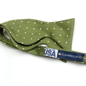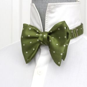 Men's Self tied Big Butterfly Bow Tie Green Polka Dot Silk S544