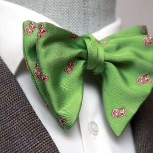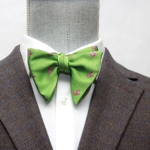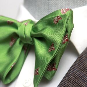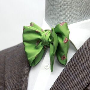 Men's Self-tied Bow Tie 100%Silk Big Butterfly Green Embroidery S686