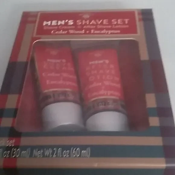 Pre-owned in new unused condition. Cedarwood + Eucalyptus. Set of 2 1 oz.shave cream and after Shave lotion.