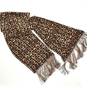 Men’s Silk Dress Scarf with Fringes Brown Beige Blue Red