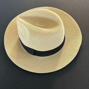 Nice, and in great condition straw hat. Black band with adjustable chin strap. Can you strap or not just tucked in hat to hide.