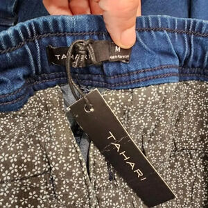 These men's Tahari blue denim cargo shorts are perfect for a casual day out. They are made from a comfortable stretch fabric and feature a relaxed fit. The shorts have two front pockets and two back pockets, as well as a drawstring waistband for a secure fit. They are in excellent condition and have never been worn.