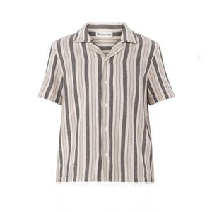 Features: Textured yarn-dye fabric; allover stripes