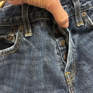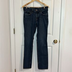 Men’s The Hollister Skinny slightly distressed Blue Jeans, button fly, 31 X 32