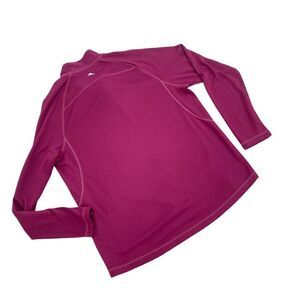 Men’s Tommy Bahama Marlin 1/4 zip athletic long sleeve top. Made of polyester & rayon. Deep Berry color. Gray trim. Marlin logo on back & pull tab. Tonal Overstitching. Euc