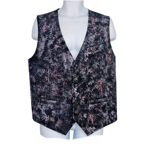 Mens Vest Size XXL 2XL Waistcoat Black Gray Paint Splatter Abstract