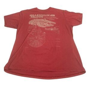 Mens maroon colored cotton vintage graphic Star Wars Millennium Falcon T-shirt. Good vintage condition. Mens size XL.