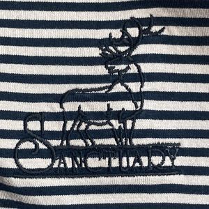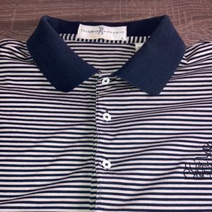 EUC Mens XL Fairway & Greene Golf Polo Black & Tan Stipe w/ The Sanctuary Golf Logo