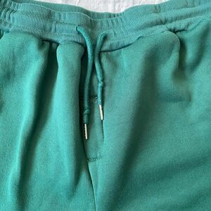 Men’s XL pull on cotton blend cut off shorts w/elastic waist & drawstring green