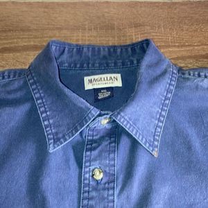 Mens XXL Magellan Outdoors Blue Button Down Heavy Blend some paint spots on back bottom