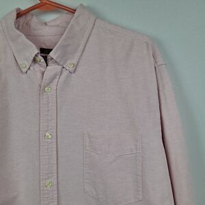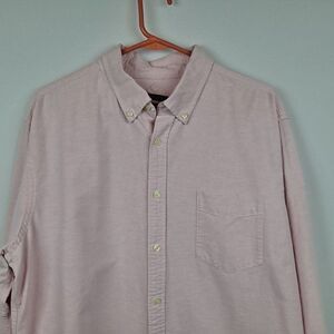 Pink, size xl. Button down collar, long sleeves, button front with 1 chest pocket. Medium weight fabric. Worn once. Measures 51" chest, length is 32"