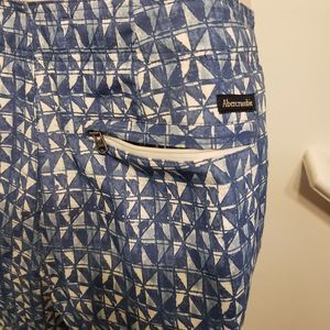 EUC drive 26 mens Abercrombie swim trunks. Blue and white. Velcro closure with tie. Back zipper pocket.