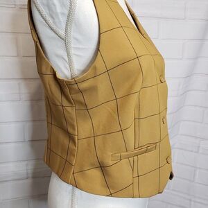 Menswear Mustard Yellow Window Pane V Neck Suit Vest womens M medium Button Gold