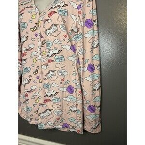 Mentally Exhausted One-piece Pajamas Womens Large Pink Unicorn Henley Drop Seat