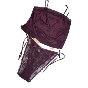 Mentionables Satin & Lace Cami and Panty Set Lingerie in Burgundy