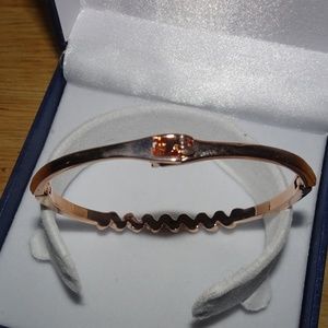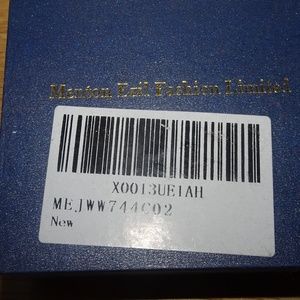 New in box. Measures 1/4" thick on front. Would fit up to a 7" wrist. Slight corner scuffs on box.