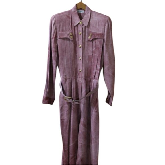 Menu Vintage 80s Tie Dye Purple Lavender Jumpsuit Belted Made in USA Size 10
