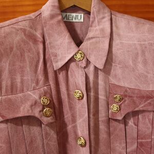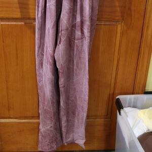 Fabulous vintage 1980s Menu jumpsuit in a striking purple-lavender tie-dye hue with a belted waist and relaxed fit. Made in USA from soft 100% rayon, this piece blends comfort with bold retro style. Belt shows extra holes and creasing from storage but overall jumpsuit is in great wearable condition. True vintage statement for collectors or everyday wear.