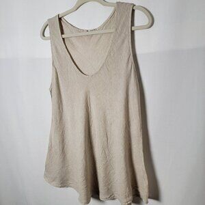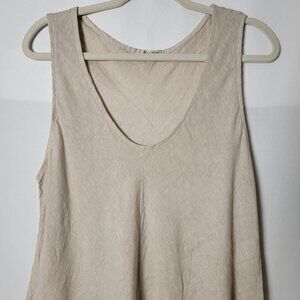 Meo Meli Beige Linen Boho Lagenlook Sleeveless Tunic Top Made In Italy Size M
