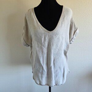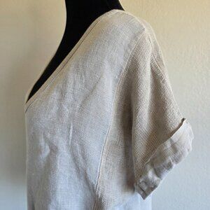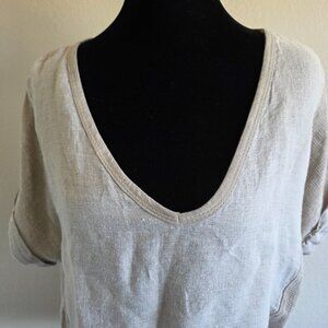 Meo Meli Italy Cotton Linen Tunic Top Contrast Fabric Semi Sheer Oversize Boxy M