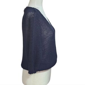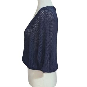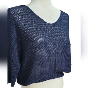 Meo Meli loose knit Sweater Dark Navy Scoop Neck OS but fits as a small. The knit is loose so you can see through it.