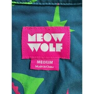 * Stylish Button-Up: Classic short-sleeve button-up shirt with a playful Meow Wolf design.