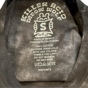 Step into a surreal, punk rock dreamscape with this limited-edition collab from Meow Wolf and psychedelic art brand Killer Acid. Featuring neon pink, green, and white illustrations across a black tie-dye cotton base, this long sleeve tee is a head-turning portal into metaphysical mayhem. With bold front and back graphics, it’s perfect for streetwear lovers, rave fits, or alt-style wardrobes. Rare, edgy, and ready to wear.