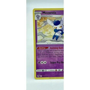 This Meowstic card from the Sword & Shield - Silver Tempest set is a must-have for any Pokémon TCG collector or player. With a Stage 1 evolution, this card features the charming Meowstic character and has a HP of 90. The card is made from high-quality card stock and has a regular finish.