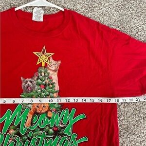 🦋 Meowy Christmas Red Cat T-Shirt Holiday Funny Casual Kittens Tree Medium
