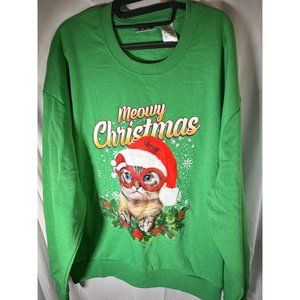 Meowy Men's Christmas Graphic Pullover Sweatshirt, Makes Noise! Size XXL, NWT