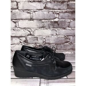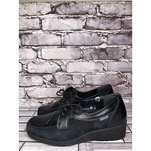 Mephisto Air Jet Black Leather Suede Lace Up Wedge Shoes Women’s Sz 8.5M US/39EU