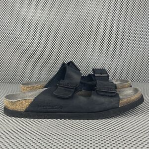 Mephisto Air Relax Sandals Adult Size 41 Black Leather Slide On Buckle Open Toe