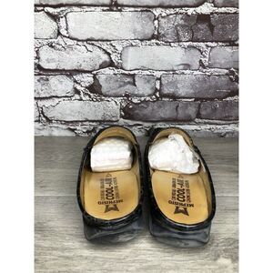 Mephisto Black Patent Leather Crocometal Croc Print Mules Shoes Women 8M US/39EU