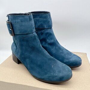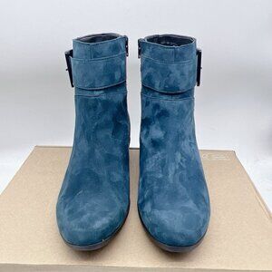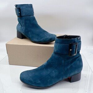 Mephisto Boots Gianina Block Heel Ankle Boots Booties Peacock Blue Suede US 9