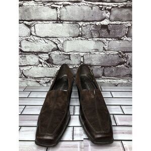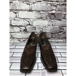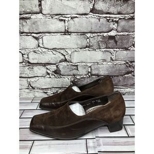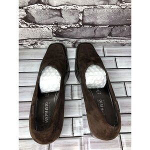 Mephisto Brown Suede Leather Square Toe Split Toe Loafers Heel Shoes Women Sz 9M