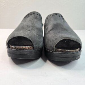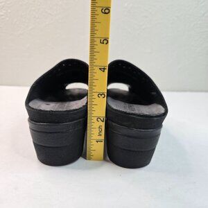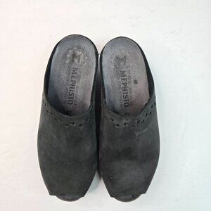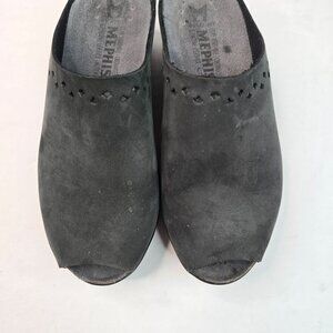 Mephisto Comfort Clog Shoes Size 7 Black Leather Slip On Platform Peep Toe Mules