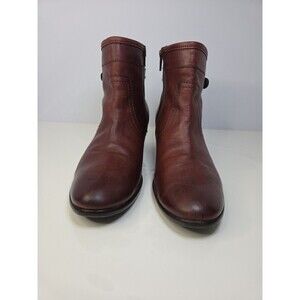 Mephisto Congac Brown Ankle Boots Sz 9 Leather Classic Side Zip Low Heel Buckle