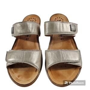 Mephisto Double Strap Gold Metallic Leather Sandals With Heels EU 41 / U…