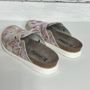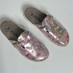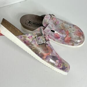 Stylish floral mules by Mephisto. Comfortable design with adjustable strap. Perfect for casual wear.