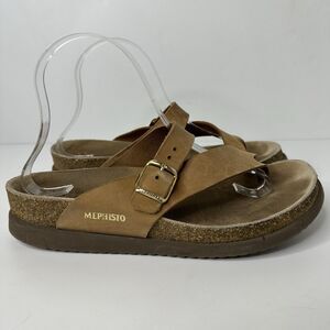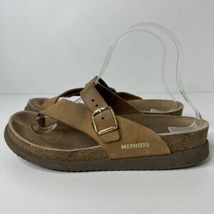 Mephisto Helen Cork Sandals Womens Sz 39 US 9 Brown Leather Slip On Air Relax