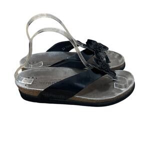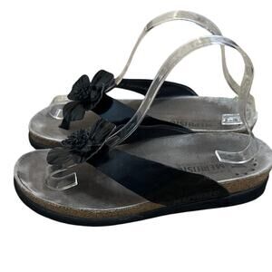 Mephisto Helen Toe Loop Sandal with floral embellishment Black Patent Size 8