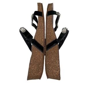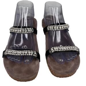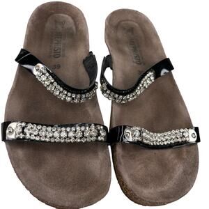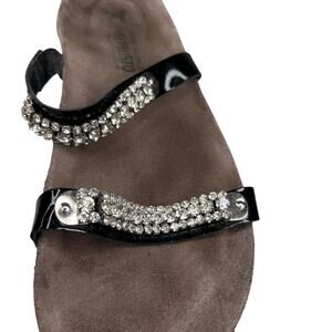 Mephisto Ivana Black Patent Leather Rhinestone Sandals 39