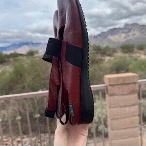 Premium comfort Mary Jane shoes by Mephisto in a rich red leather . Features their famous Air-Relax cushioned footbed, shock-absorbing sole, and stretchy elastic straps for an easy slip-on fit. So comfortable and supportive for all day wear. Rare color and excellent condition!