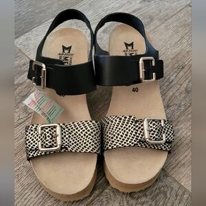 Mephisto Lissandra Black Condor Wedge Platform Sandals Soft-Air Tech Leather NEW