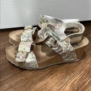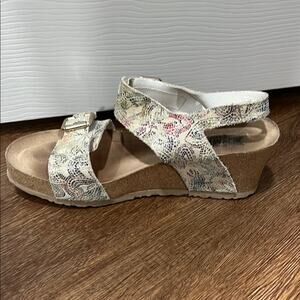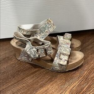 Experience unparalleled comfort with Mephisto's cream sandals, featuring a contoured cork footbed and adjustable straps for a personalized fit. The sandals' elegant design combines a nature-inspired aesthetic with the brand's renowned craftsmanship, making them perfect for casual outings.