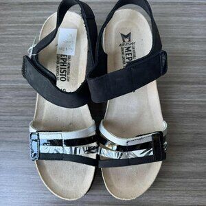 Mephisto Lucia Women's Heeld Wedges Sandals $289 in Black/Multi